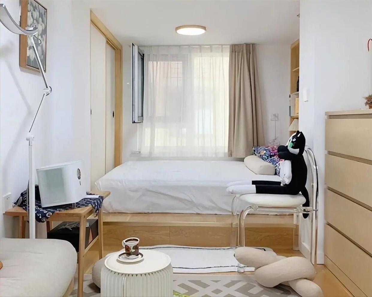 而内侧靠窗位置,就是主卧了,为了最大限度利用空间,博主直接定制了一组地台床,底部带有储物空间,过季衣服都可以放在里面;