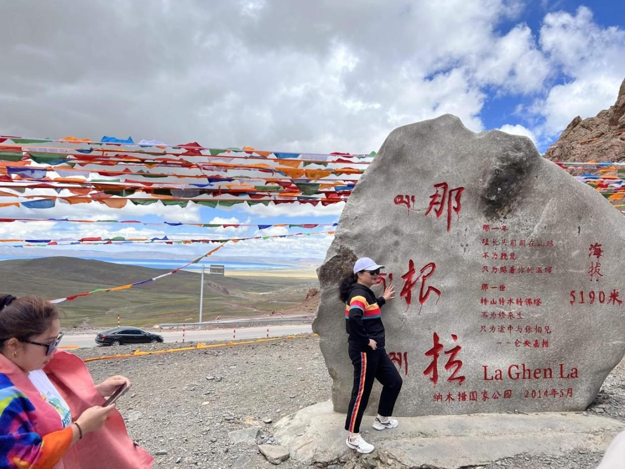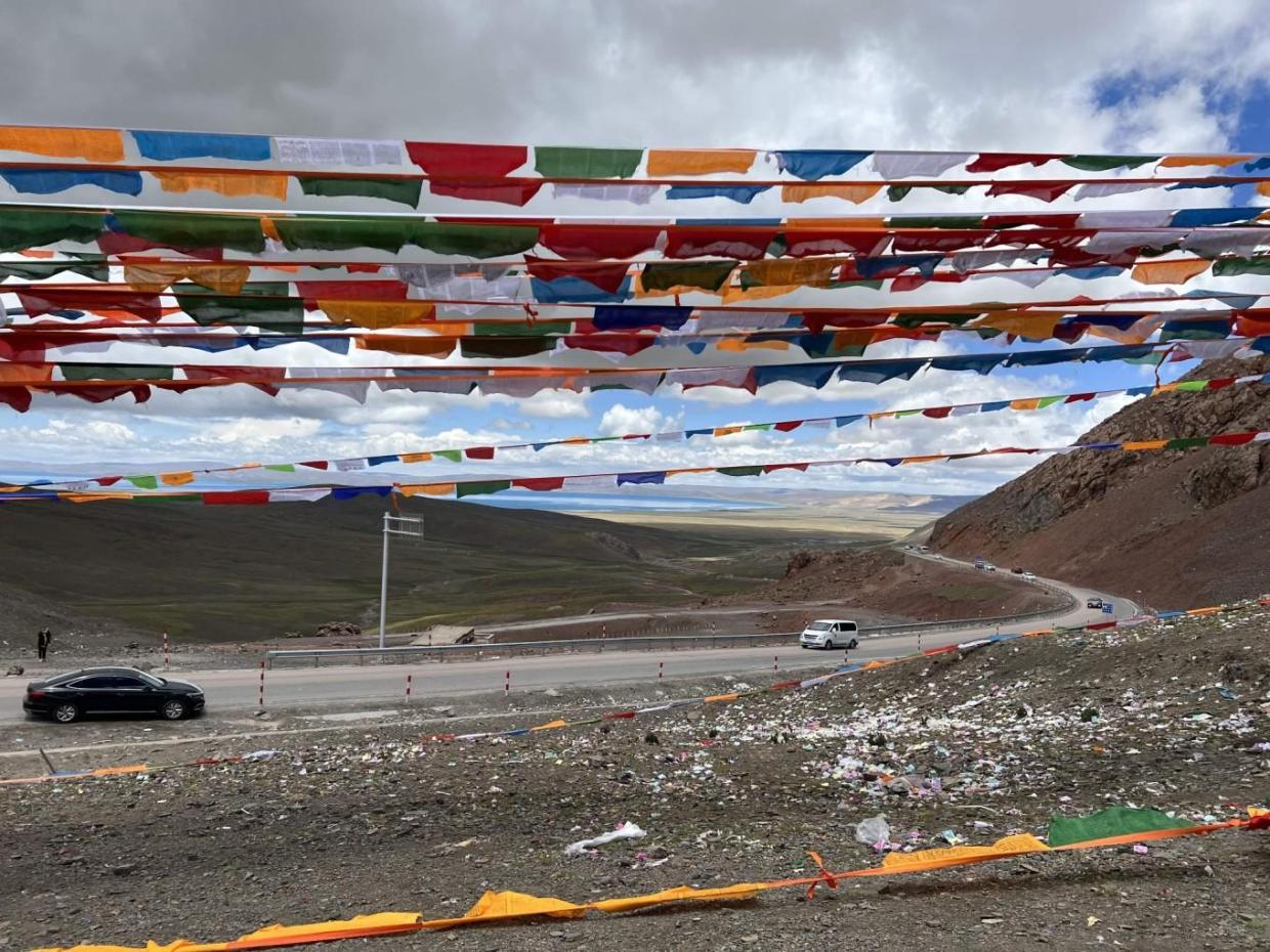 在经幡飞舞的山口,游客无惧5000多米的高海拔,纷纷下车留下难忘的一刻。