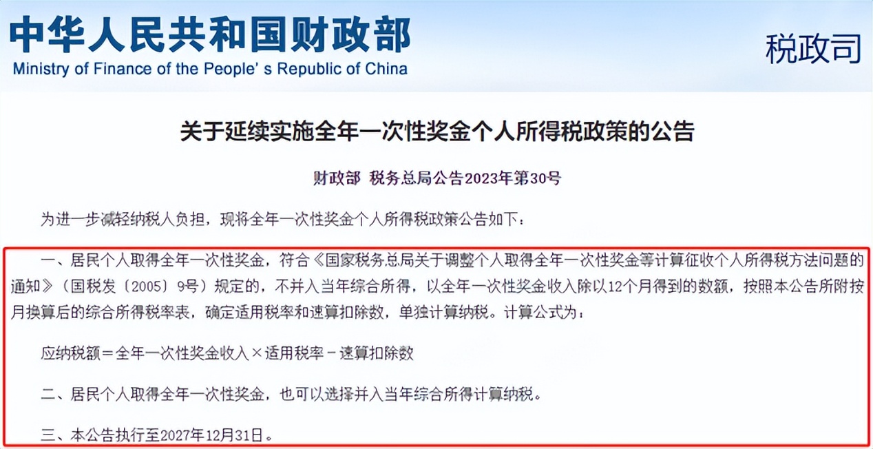 一图带您了解全年一次性奖金个人所得税最新政策 ⬇️