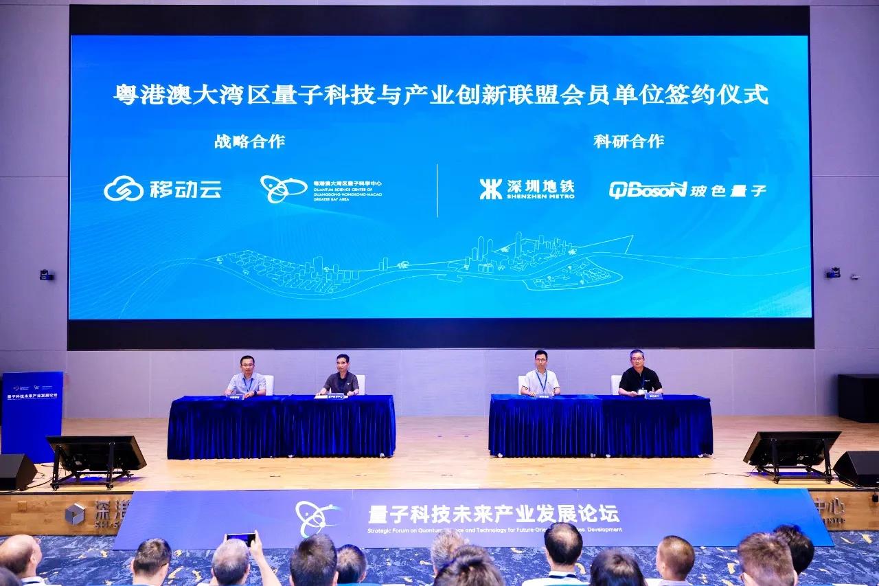 论坛现场,来自金融、交通、生物医药等多个应用领域的 15 家联盟会员单位代表共同启动联盟内产业合作,中国移动云能力中心与量子科学中心、深圳地铁集团与玻色量子签署战略合作协议,标志着湾区内外量子科技产业生态领域合作开启了新篇章。
