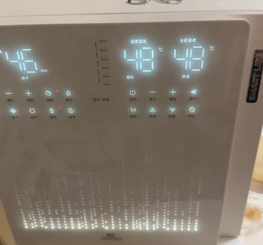 内部容量较大,能一次性容纳较多宝宝用品,包括奶瓶、餐具、小型玩具等。分层设计合理,取放物品方便。操作采用触摸屏按键,界面简洁清晰,老人也能轻松操作。自带夜灯功能,夜间使用时不用开启强光,方便夜间喂养场景下的操作。
