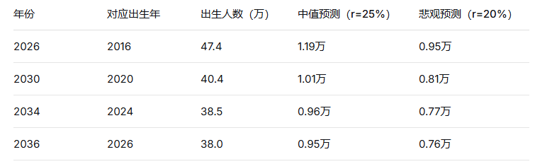 注意这里:出生率的下降,有10年的滞后期。 2016年出生的孩子少了,反映在青训入口是2026年;2022年出生的孩子更少,反映在青训入口是2032年。现在看到的青训人口崩溃,实际上是2010年代中期出生率暴跌的结果;而未来十年的结果,将由2020年代的出生率决定。