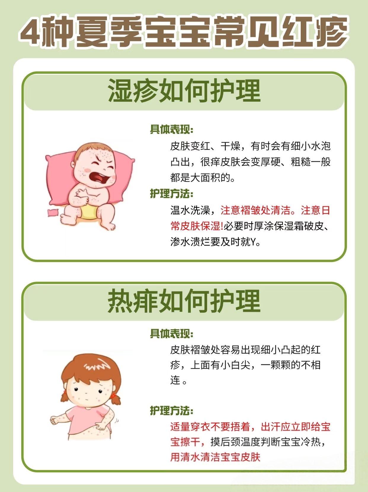 3. 该看医生时别犹豫——如果宝宝发烧、疹子大面积破皮流水、护理3天没好转,或者精神状态不好,直接去医院。