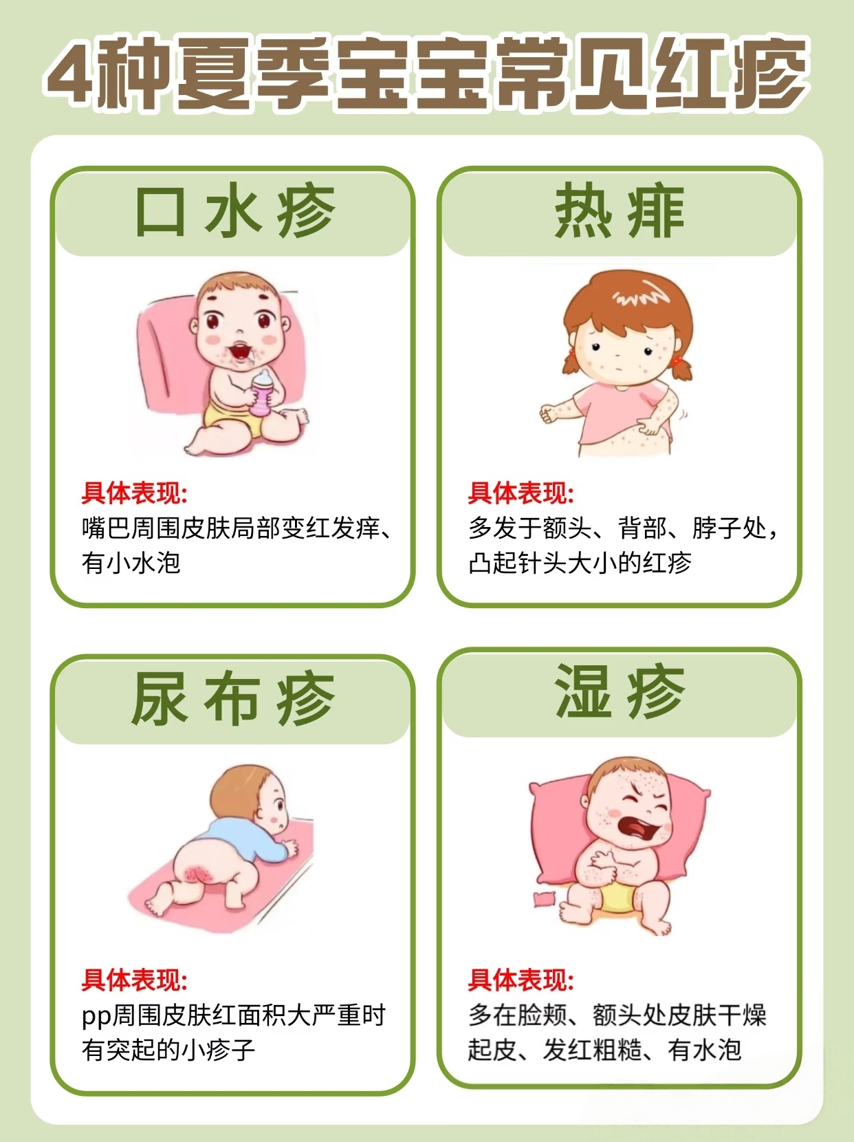 别急,今天咱们就把夏天最常出现的四种宝宝红疹一次性说清楚。看完这篇,下次再看到红点点,你心里就有底了。