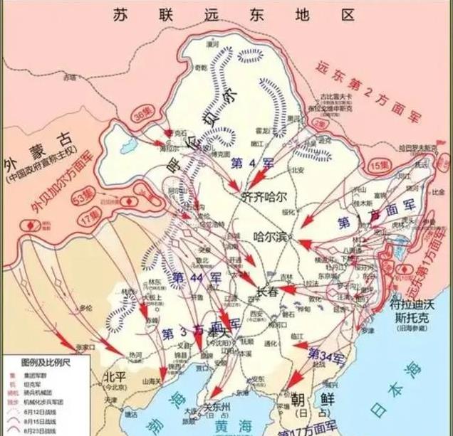 反观对面的苏军,那真的是兵强马壮。当时的苏军刚刚结束和德国的战争,正是士气最高昂,战斗力最强大的时候,苏军在远东地区部署了174万人,分为外贝加尔方面军,远东第一、二方面军,装备坦克5000多辆,飞机4000余架,火炮17000多门,战斗从8月8日开始,仅仅过了七天,到8月15日关东军就投降了。
