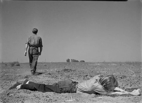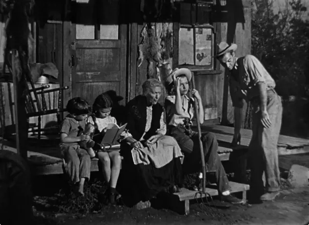 影片看似营造出来了一个美国男人的坚毅,实际上这种坚毅很快的就不复存在了,农业时代的消逝意味着荧幕上的主流不在眷恋过去,而是开始向往未来。而曾经可以在全世界范围内引发最广大民众共鸣的角色也开始消失殆尽。我们可以回想一下,农村题材的影片现在还有多少。文明的兴替反应在荧幕上是一种交叠与渐进。当美国的大荧幕上还保留有普通民众的一席之地的时候,我们可以联想到的是美国社会中的无法发声的小分子的残存,一旦这种残存都不存在了,那么美国社会必然进行到一种新的形态。这就是为什么二战之后的美国电影开始从原来的普遍的人文关怀,慢慢的转向了意识形态一样。这种替换是一种预言,预言着旧时代已经过去,预言着新时代到来。
