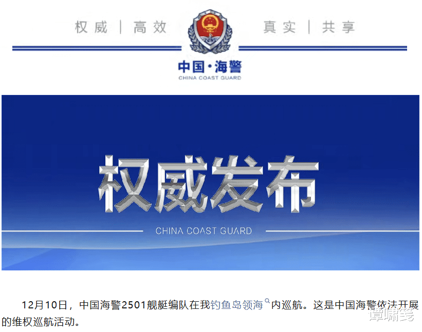 2025年12月10日,中国海警2501舰艇编队如期驶入我钓鱼岛领海开展维权巡航,舰艏的五星红旗在晨风中猎猎作响,既宣告着主权在我的坚定立场,更彰显着当代中国维护领土完整的硬核实力与从容气度。这则看似常规的执法通报背后,是一段从被动回应到主动管控的维权史诗,更是一幅大国担当的生动画卷。