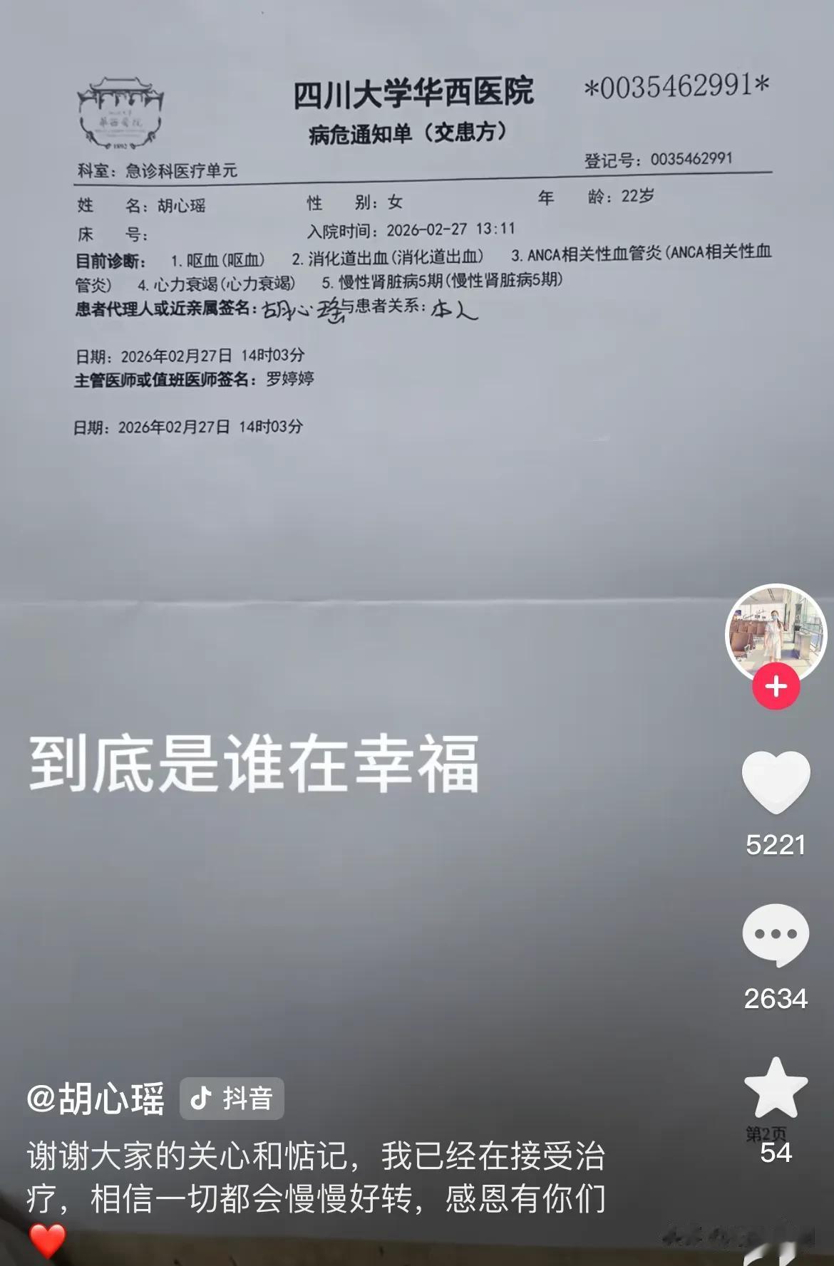 2025年一年,她就收到了28份病危通知书,最多的时候10天收5张。医生一次次的让家人一次次做好最坏的打算,可她一次次从鬼门关爬回来,她有太多没完成的事情等着她去做了。