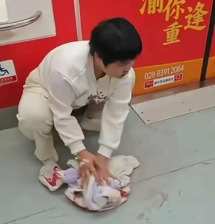 回到地铁上那动人的一幕,她拖着本就疲惫不堪的身体,为了不影响别人,气喘吁吁的擦干净了地板,鲜红的血液和雪白的外套让人看了格外的刺眼。