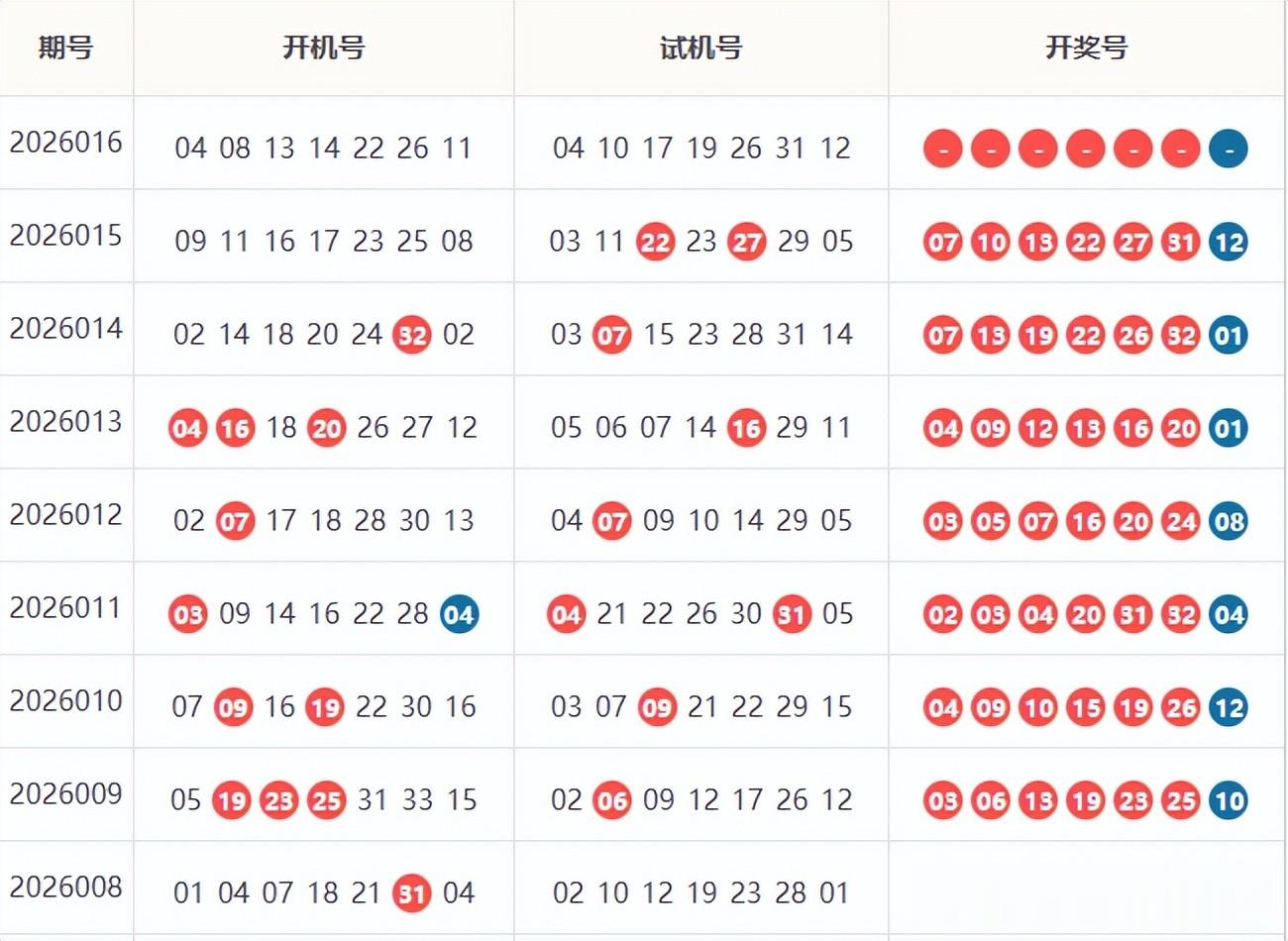本期双色球红蓝数据