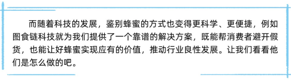 蜂蜜的甜蜜,源于大自然的馈赠,也需要科技的守护。图食链用科学手段打破“假货多、难分辨”的认知壁垒,彻底打消消费者的购买顾虑,让大家敢买、愿买好品质的蜂蜜;同时也让诚信蜂农的好产品得到认可,实现应有的价值,打破行业“劣币驱逐良币”的困境,为低迷的市场注入新的活力,让传统蜂产业焕发新活力,推动整个蜂蜜行业朝着良性、高质量的方向发展,也让每一位消费者都能安心享受这份来自大自然的甜蜜馈赠。希望有更多像图食链这样的企业能加入进来,一起用科技力量守护这个甜蜜的产业!