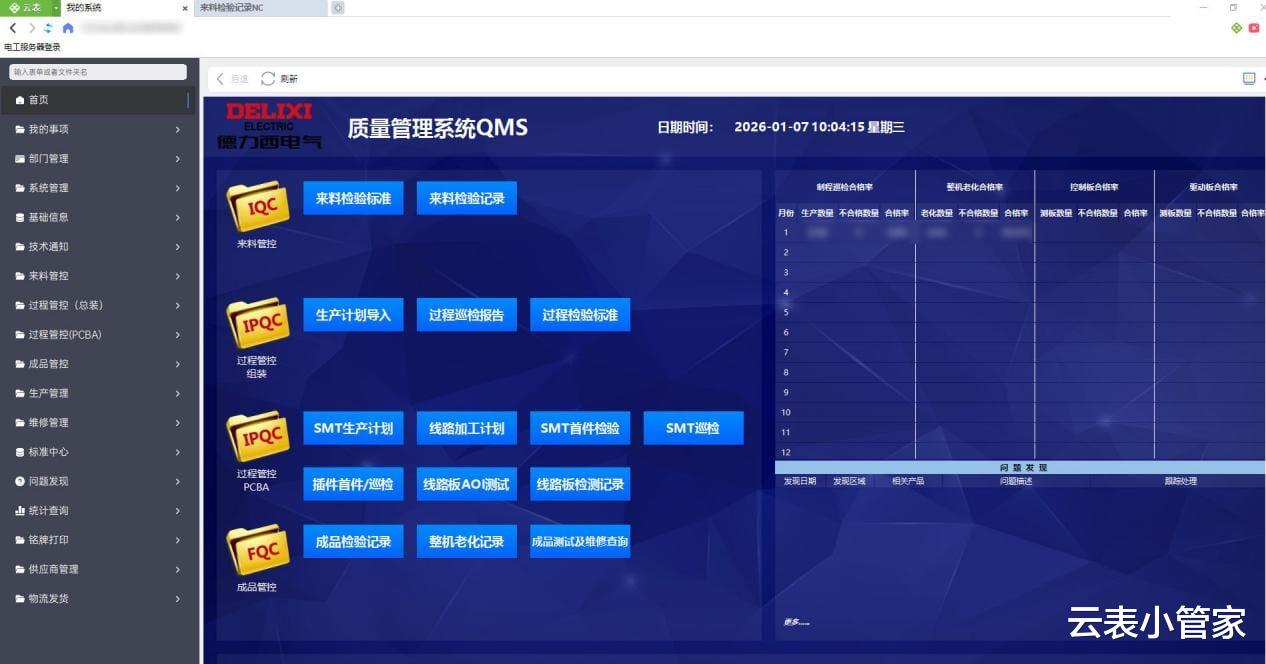 QMS是质量管理系统,覆盖来料检验、生产过程检验、成品检验等所有环节。所有质量数据都在这个系统中记录和追溯。