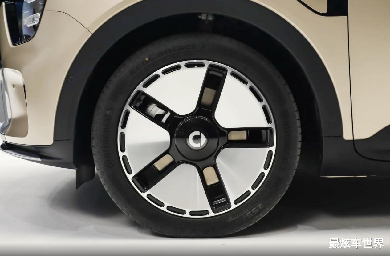 在轮毂设计上,真的有种小号“迈巴赫GLS”的感觉,双拼色“大饼轮毂”说不吸睛是假的,特别是轮毂边缘还保留了标志性的镂空处理。不止于此,新车轮毂上Smart车标罩盖和劳斯莱斯的车型采用了类似的设计,就是无论车轮怎么转动,它都会保持重心向下,车标始终是正的。车尾的设计也很有看点,D柱采用了可发光的LOGO设计,夜间出行仪式感到位。