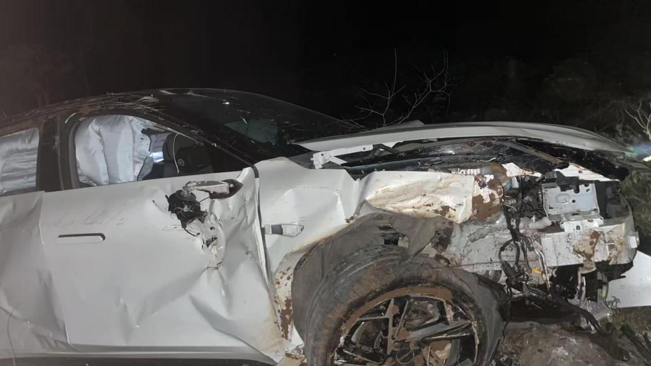 据车主孙先生描述,11月12日晚十点多,他驾驶领克07 EM-P行驶至易县易水湖景区附近的龙溪公路。该路段无路灯照明,即便开启远光灯,视野仍受地形限制,行至一处S形弯道时未能提前发现下一个弯道,车辆从护栏排水缺口冲出路面,在坡道上连续翻滚多次后撞上排水口两侧的石头。
