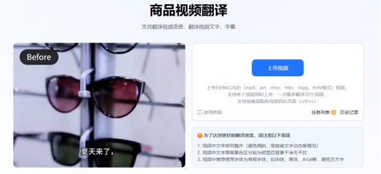 很多时候,我们需要翻译的不仅仅是视频里的声音,更多的是视频画面中嵌入的关键文字信息(如字幕等)。易可图在这方面表现得非常出色,它集成了强大的AI识别与翻译引擎。虽然它主打的是电商图片和视觉设计,但是它也给大家提供了AI翻译功能,能精准识别视频中字幕和语音,并支持一键翻译成中文(或将中文翻译成多国语言),目前支持31种语言。