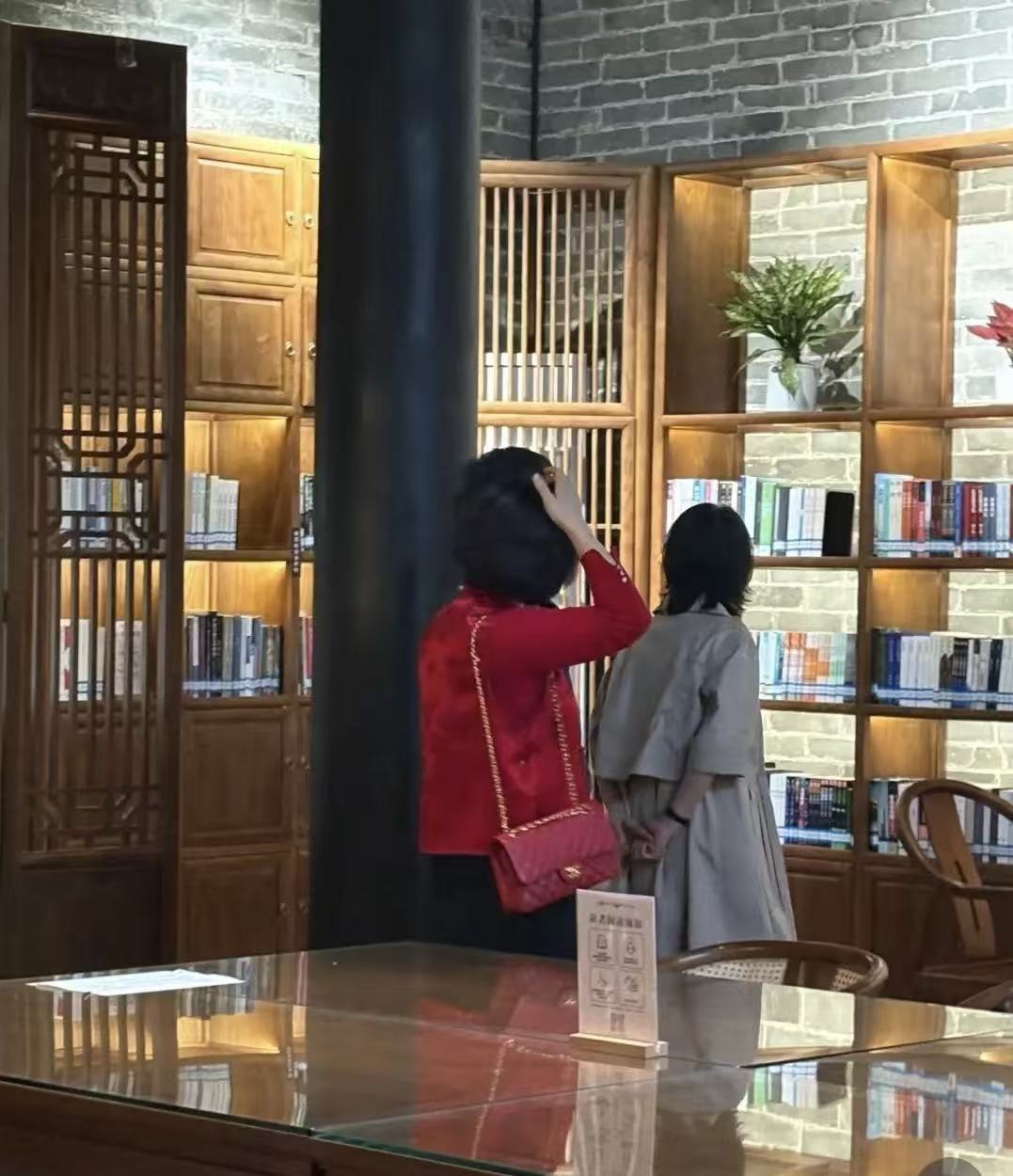 逛完唐家古镇的非遗物件后,董明珠又走进了一家书籍店,她似乎对这些所有东西都很感兴趣。背着手遛弯一样,跟随的人也不敢催她,果然霸气呀!