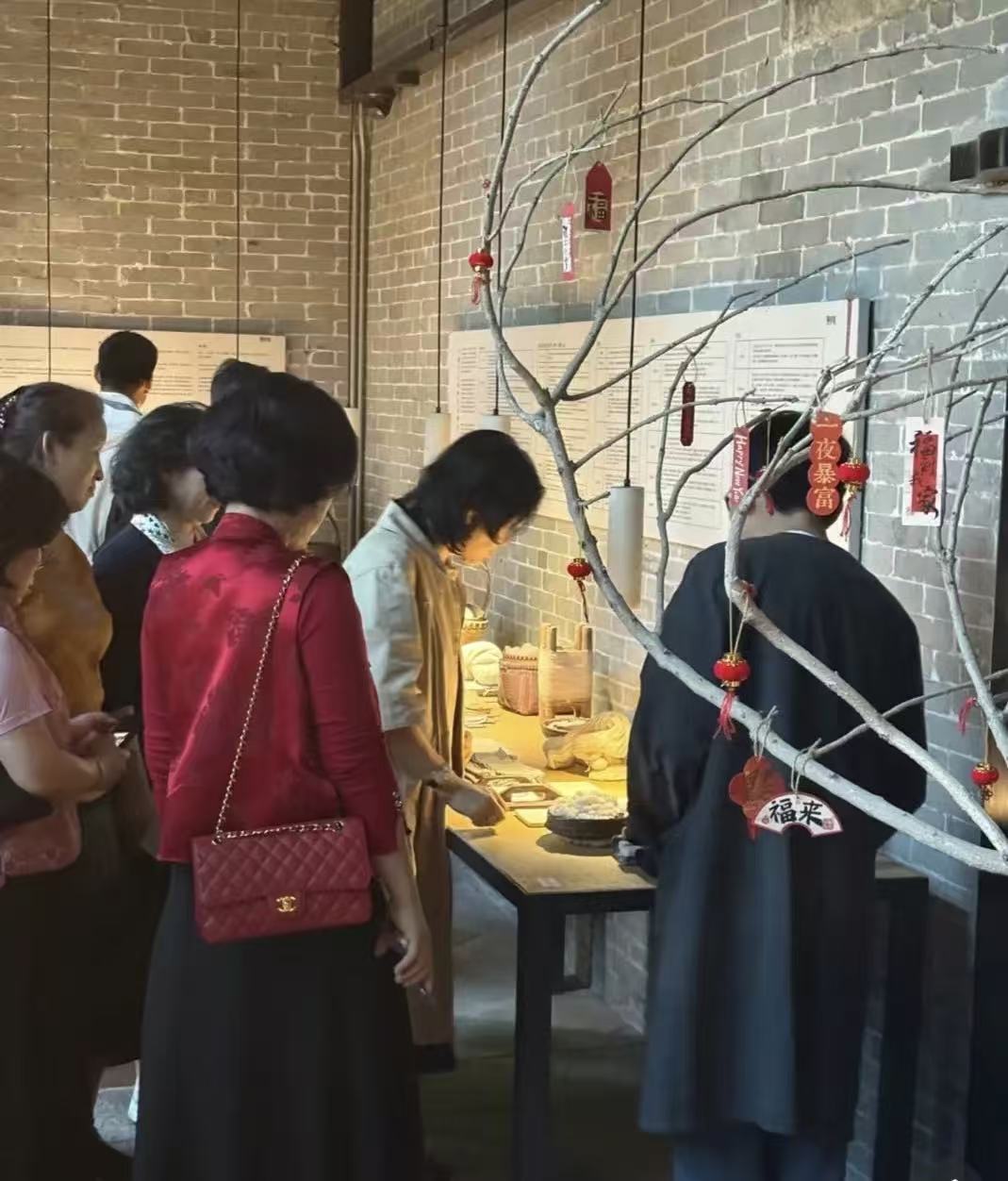 董明珠这次去唐家古镇并不着急离开,她慢悠悠的一家一家的逛,看到感兴趣的物件就停下来细细欣赏。身边依然是前呼后拥的围着一群人,这次大多数都是女企业家。红色衣服那位女企业家穿着打扮压了董明珠一头,背了个香奈儿的包包,她全程都在陪着董明珠。