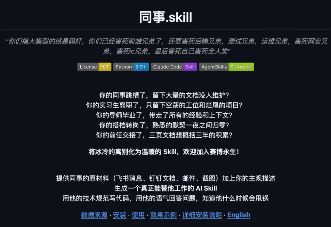 "同事.skill"火爆的本质,不是技术多牛,而是它精准戳中了职场最底层的焦虑: