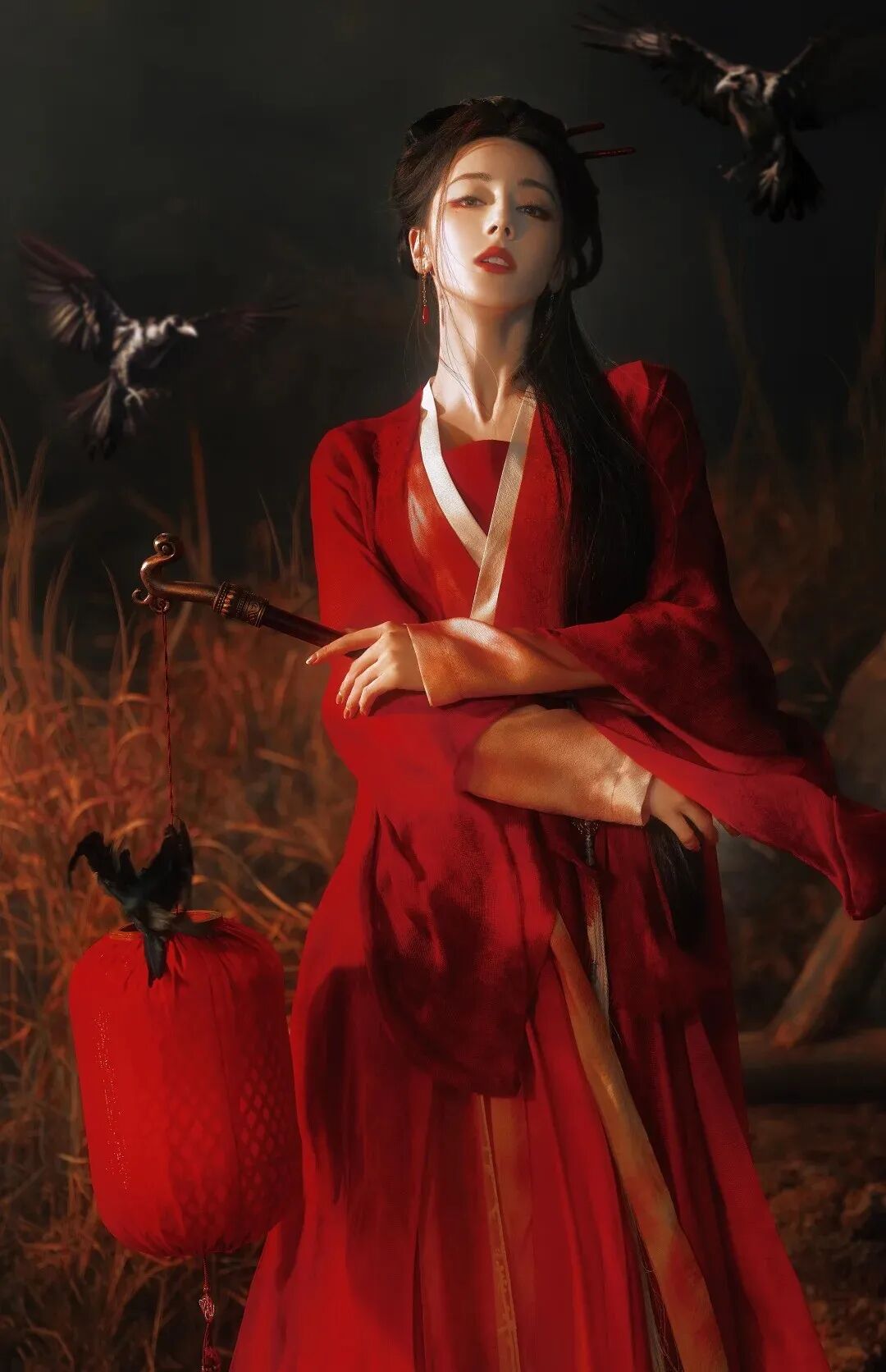 她不需要过多妆容修饰,红衣提灯站在夜色里,一张脸就是一幅画。我觉得这个角色简直是给她量身定做的——