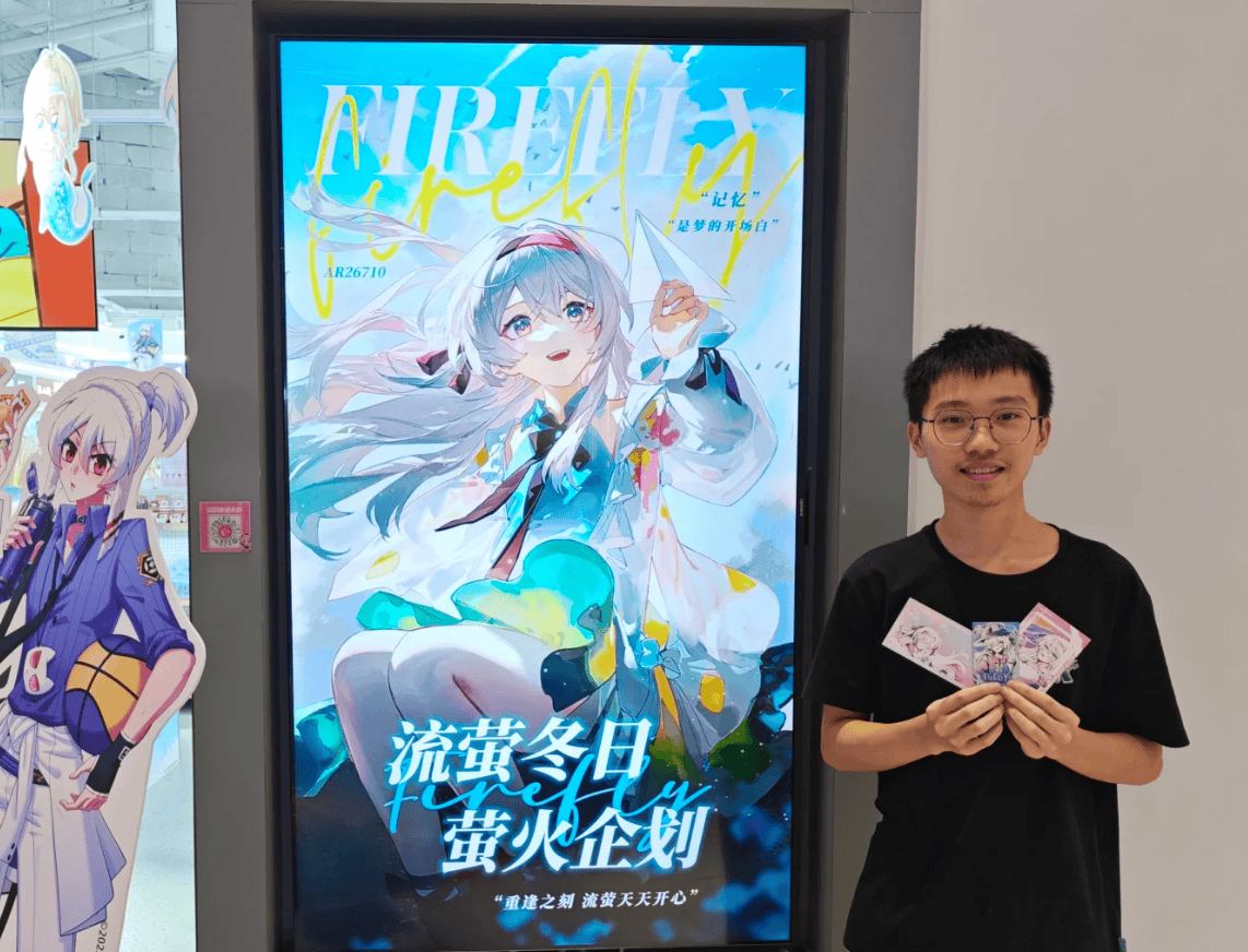 在浙江杭州的商场内,还摆放了大量流萤的等身立牌,从官方立绘到Q版造型,再到萨姆机甲,集齐了流萤的各种形态让圈外人都忍不住被她的美貌吸引。