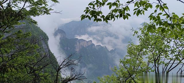 到了山顶,雨还在下,沿着山路从上往下游览。在一段游览栈道上,有游客惊呼:“快看!快看!”大家顺着手指的方向看过去,一片浓雾散开,云开之下,是莽莽翠绿的山峰。晴日看山本无奇,云雾观峰有惊喜。你永远不知道哪片云在什么时候散开,给你打开一扇观景的窗户,一旦云开景出,那种壮美超乎想象。难怪几个游客感叹,就凭这一刻,排两个小时队就是值得的。