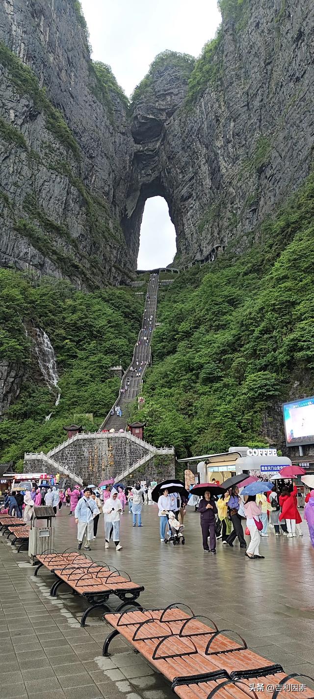 午餐之后是去天门山景区。天上开始飘雨,好在不大。