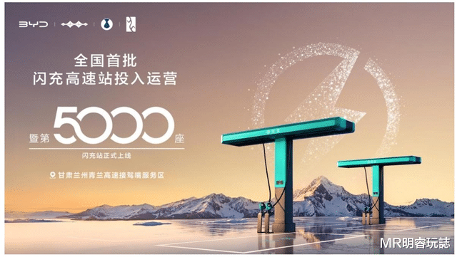 3 月 31 日,比亚迪第 5000 座闪充站在甘肃兰州青兰高速接驾嘴服务区正式投运,全国首批高速闪充站同步启用,“闪充中国” 战略迈出关键一步。