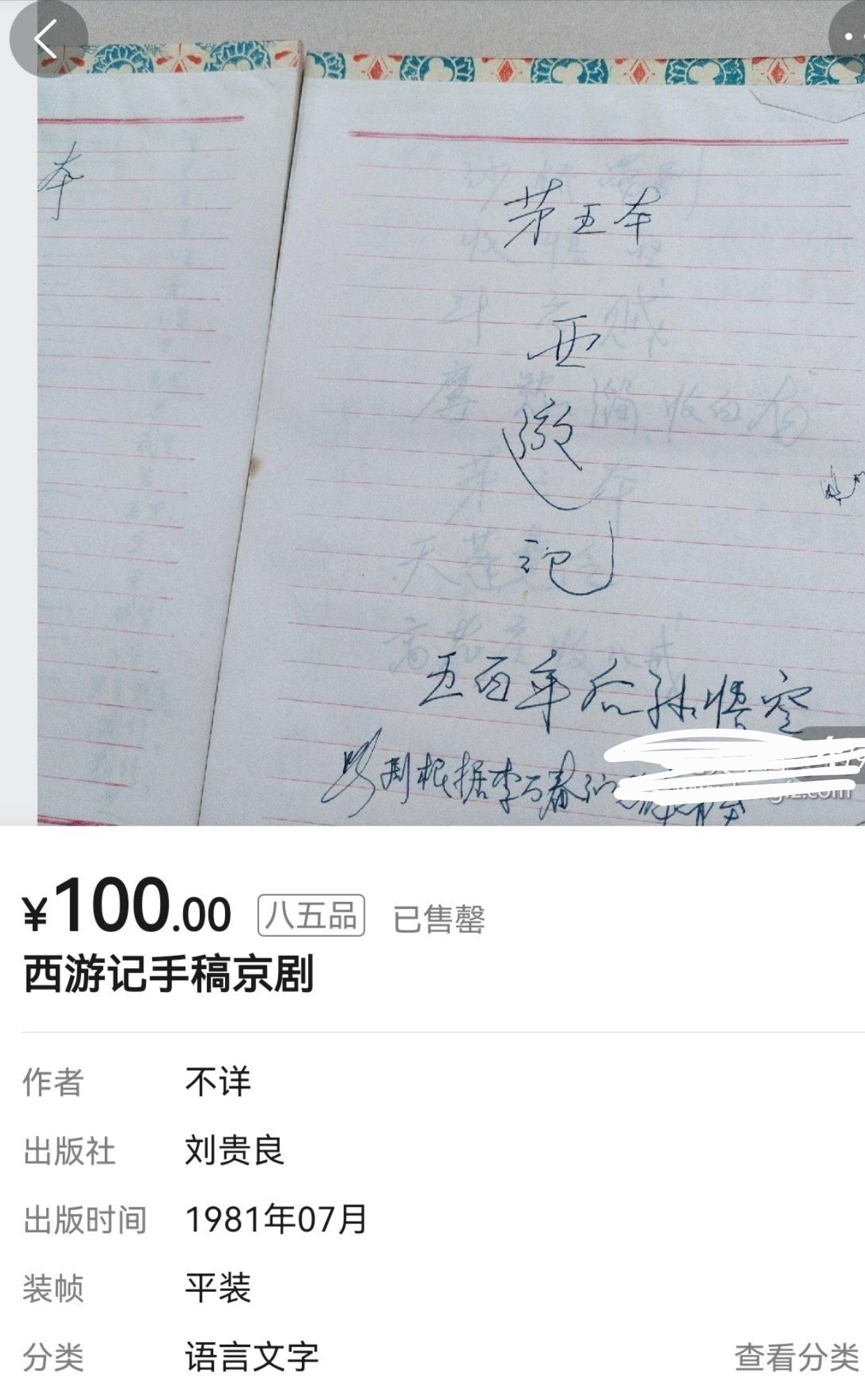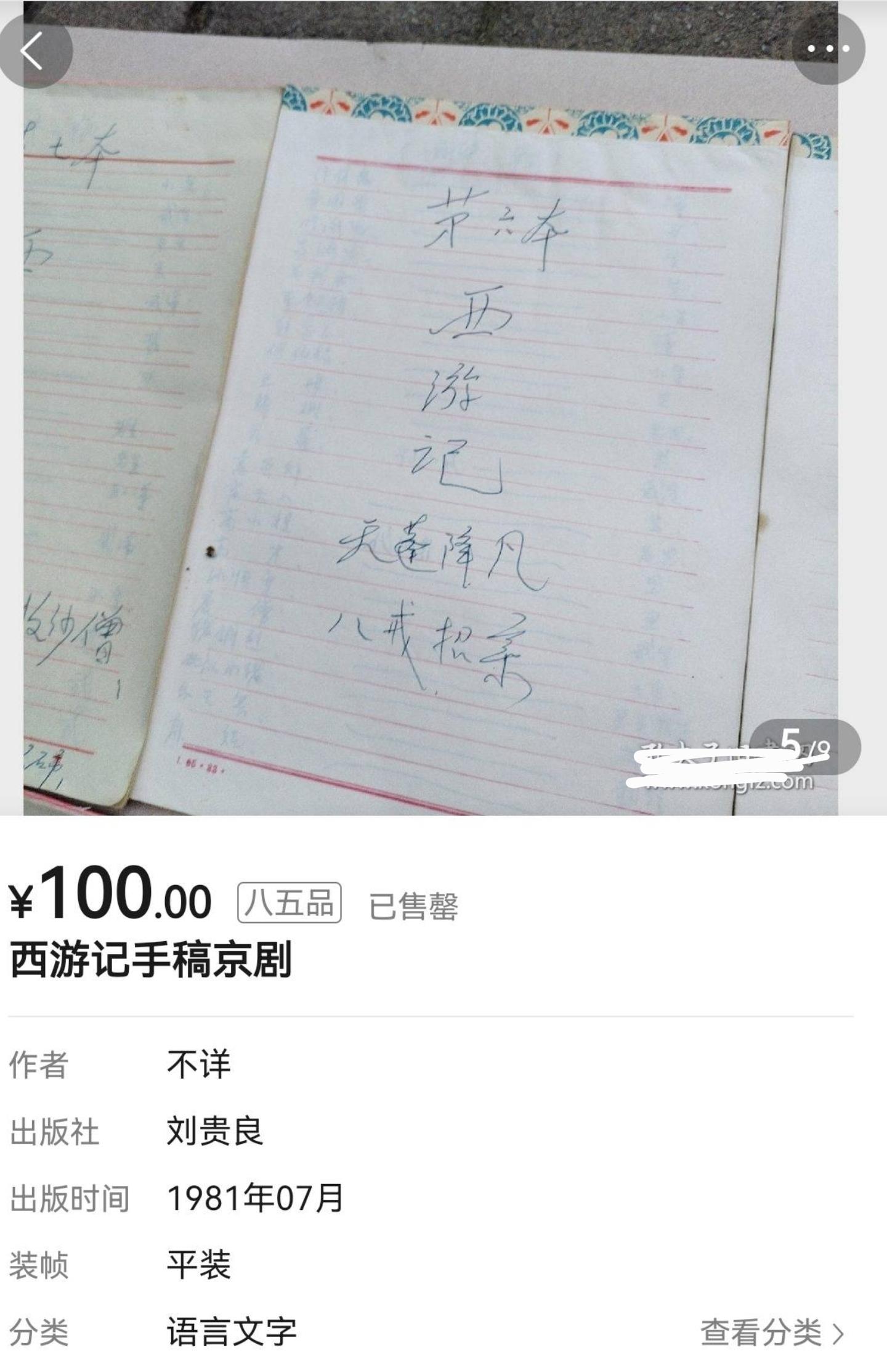 有网友就发现,这位刘富如所谓“珍藏”的手稿,其实就是某二手旧书网站上的东西,并且在3月10日的时候被人拍下买走,花费了100块钱人民币。