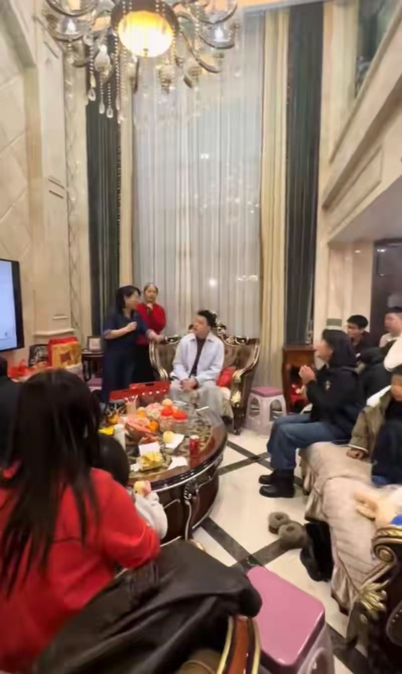 房子里面装潢更是气派,超大平方的复式大别墅。大家坐在大厅唱家庭版KTV,舅舅和舅妈还是麦霸,其他人都很给面子在鼓掌,家庭成员相当多。桌子上到处都堆满了零食,可以这样聚在一起过年,氛围感好又有趣。