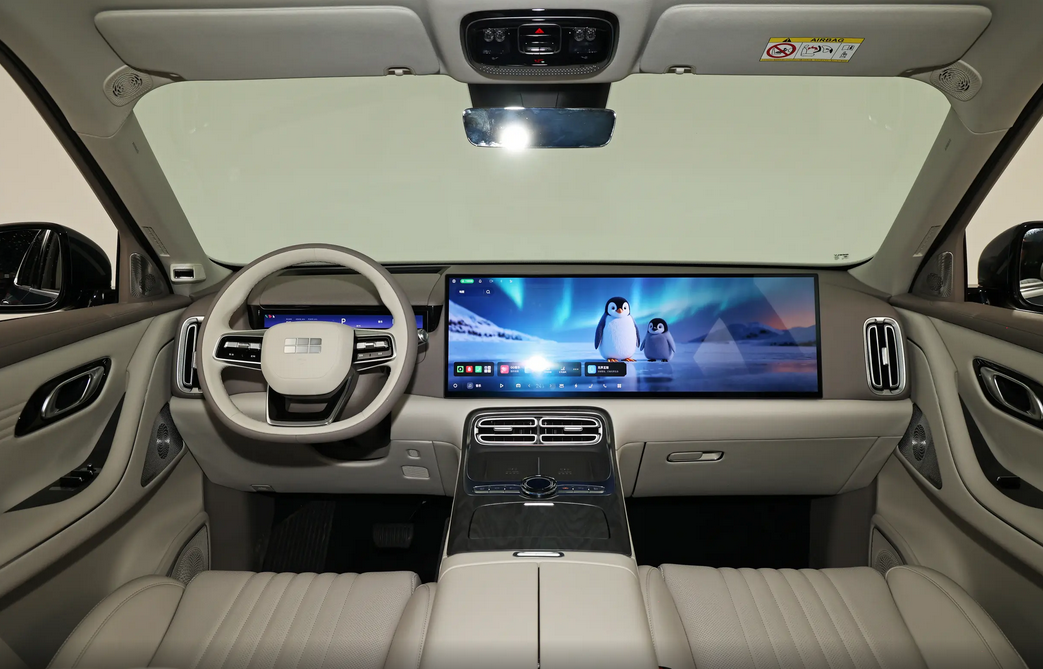 进入银河M9的座舱,中控台线条张力十足,空调出风口、车门板等区域通过亮银色饰条点缀,精致感大幅增强。12.66英寸的全液晶仪表能清晰展示行车信息,高配版还配备了32英寸HUD抬头显示,白天或黑夜都能看得清。该款车的触控屏为15.4英寸,3K分辨率呈现出的画质相当细腻,内置高通骁龙8295芯片,是这个价位应有的表现。高配版则一步到位30英寸6K触控屏,屏幕拥有卫星导航、Carlink手机映射等多种功能,齐全的配置能满足主流用户的使用需求,高配版还支持六音区语音交互,比低配版的四音区更智能,车内乘客发布指令都能响应,便捷程度更高。