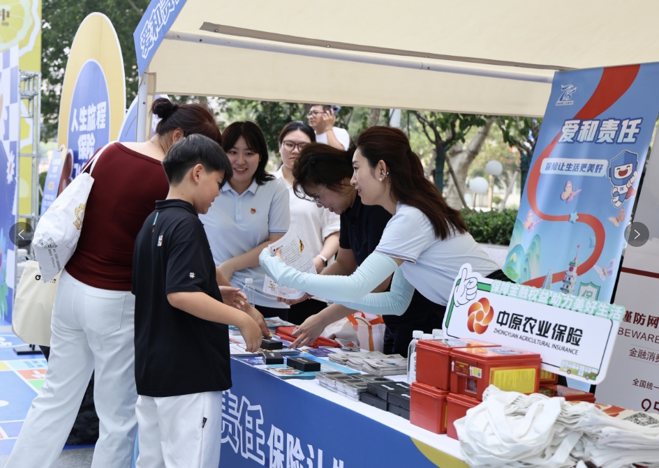 7月8日下午,由河南日报传媒联合中国人寿河南分公司、泰康人寿河南分公司、中原农险河南分公司等12家省级保险机构共同举办的2025年“7.8全国保险公众宣传日”进商圈活动在郑州国贸360广场外广场举办。本次活动以“爱和责任 保险让生活更美好”为主题,通过创新的“保险市集+互动游戏”模式,为郑州市民带来了一场别开生面的保险知识科普盛宴。