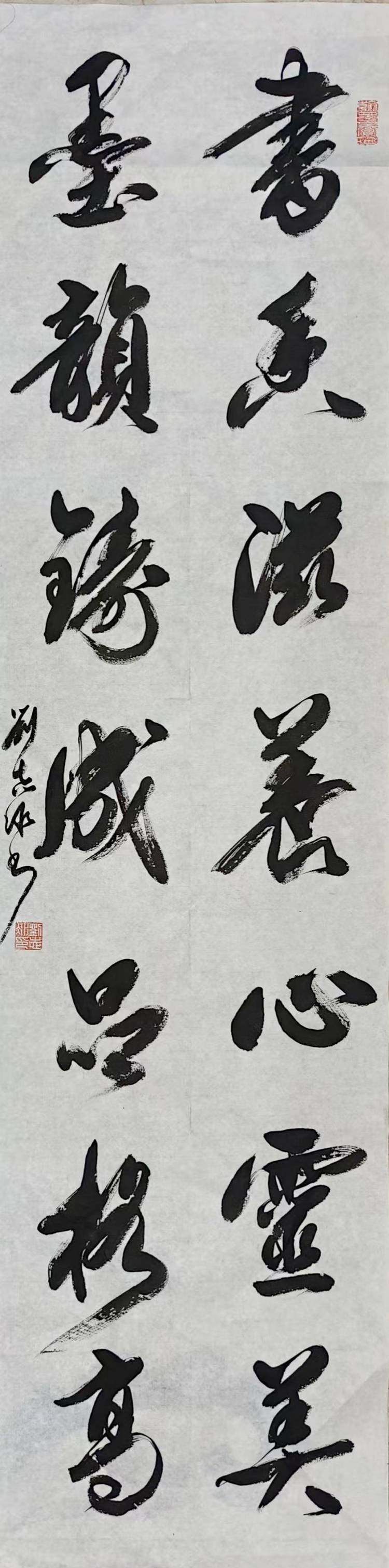 刘志冰,男,1957年7月出生于广东省海丰县。中共党员。1977年1月应征入伍海军战士。1980年5月毕业于天津海军后勤学校财务系:I987年7月毕业于天津河北工学院企管系;1992年2月任海军上海基地某部帆缆科:科长;1994年2月任海军上海基地某部供管处:处长;1998年1月部队转业地方浦东新区执法局办公室工作,担任信访投诉中心主任。书法学习:初学赵孟頫,后学米芾,李北海,王铎,孙过庭,王羲之,颜真卿行书等。在天津上学期间曾师学于于志秋先生;在上海部队工作期间曾师学于韩天衡先生,翟心安先生。 作品入编《中国当代名家书画作品集萃》第一册,第三册;《国之瑰宝·艺术大典》;《中国艺术界名人录》:《艺海辞源·盛世名家》:《国脉传承·艺术名家》书籍。独刊2025年《庆元旦,迎新年》网络书法作品展;《八一华章·翰墨铸军魂》书法作品网络展;《铁血丹心,翰墨铸魂》书法作品网络展;《阅兵展国威·文化铸丰碑》书法作品网络展:《家国同欢·艺贺华诞》书法作品网络展。2025年《文化强国一刘志冰》限量版邮册由中国集邮总公司出版发行。荣获2O25达芬奇国际艺术奖金奖;荣获福布斯世界文化盛典金奖。被世界文化理事会授予:艺术界的诺贝尔奖。被中华文化发展促进会,中国艺术研究委员会授予:中国文化探索前沿人物荣誉称号:被中视文化频道年度艺术盛典授予2025年度杰出艺术人物:2026年全国两会推荐艺术家。被中国当代名家书画编委会授予“中国当代名家书画功勋艺术家”荣誉称号;国家一级美术师。