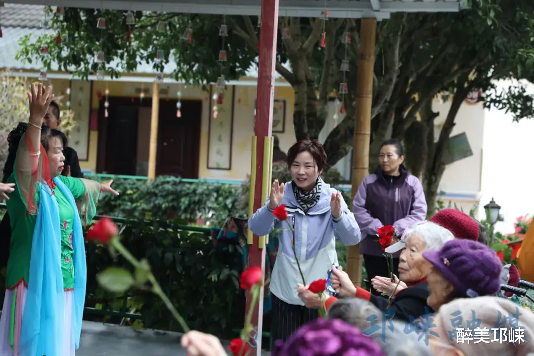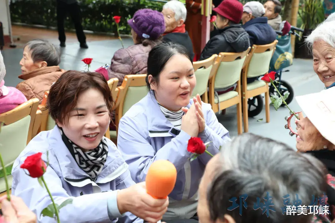 节日前夕,邛崃市悦美佳康养服务中心里暖意融融,志愿者们带来的文艺表演精彩纷呈,歌舞声、欢笑声交织在一起。