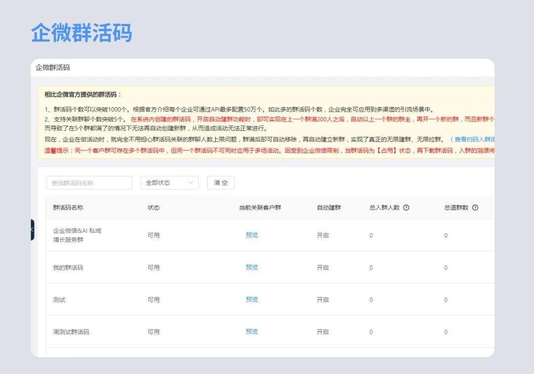 通过企微SCRM的「企微群活码」功能,企业可以轻松生成真正永久有效的群活码。