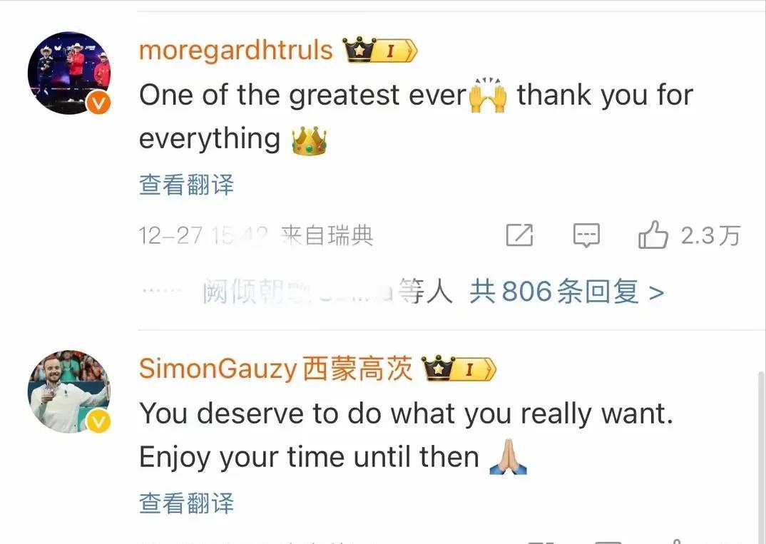 法国选手西蒙、瑞典选手莫雷加德、非洲选手阿鲁纳等运动员纷纷发声支援樊振东。