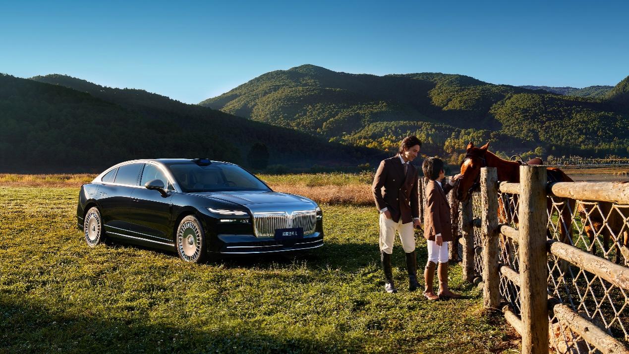 新车提供双拼与纯色总计6种外观颜色,包括金耀黑、金銮红两大双拼配色及杜若白、宸星灰、香槟金和玄英黑四款纯色车身。车身尺寸达5125/1985/1522mm,轴距达3010mm,恢弘体量自带舒展大气的旗舰气场。前脸采用“鲲鹏展翼”造型,彰显前瞻视野与沉稳气场,配合“击水三千”LED大灯及动感流畅的车身线条,打造极强辨识度。细节之中,更添巧思。20英寸「光晖」轮毂彰显豪华格调,悬浮车标在轮毂转动中始终保持静止,呼应“晖映前路,光晖远照”的自信姿态,动静之间尽显东方豪华气韵。