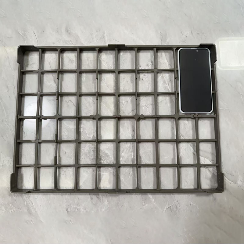 这类丝印烤盘应用场景灵活,适配性极强。无论是手机盖板的边框点胶、摄像头模组的芯片封装点胶,还是柔性屏的折痕加固点胶,均可通过定制化设计满足需求 —— 针对异形工件可定制专属定位槽,针对批量生产可设计多工位分区(单盘可承载 20-50 个工件),大幅提升点胶机的单次处理量。选型时,需关注烤盘定位精度、平面度与材质耐温性,优先选择与点胶机行程适配的尺寸规格;维护时用异丙醇擦拭表面胶渍即可,疏油涂层与高硬度材质使其耐磨损、易清洁,使用寿命比普通托盘延长 2-3 倍。