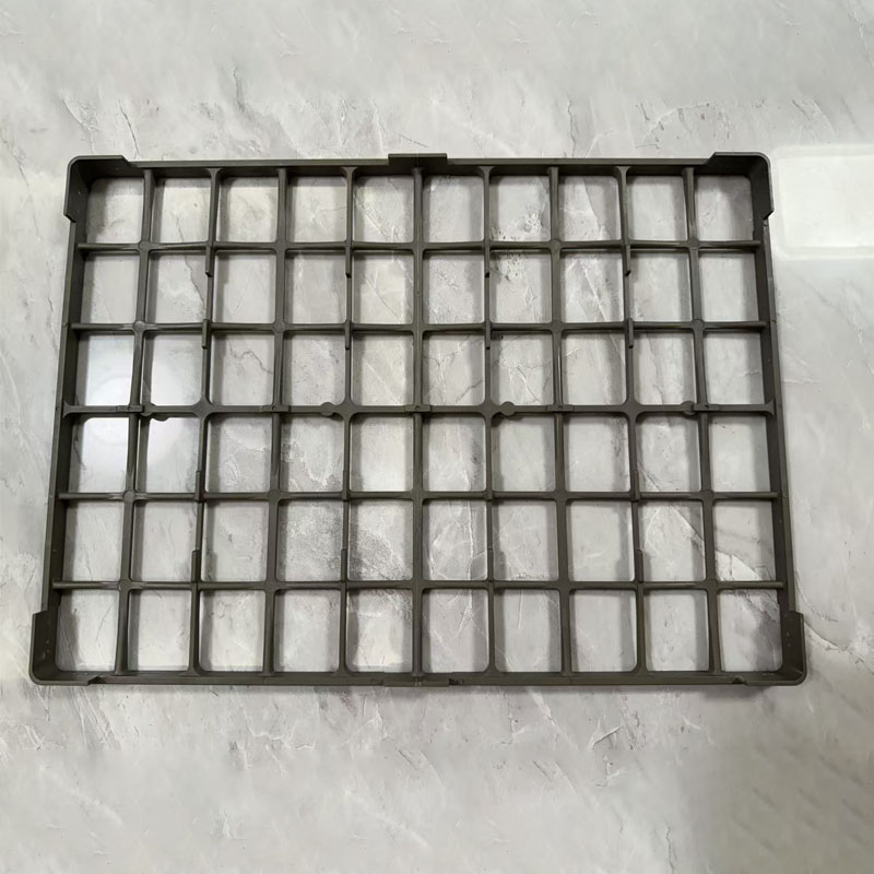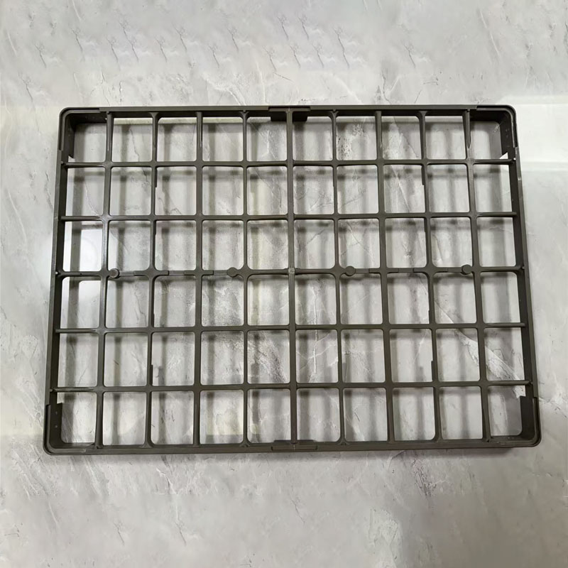 烤盘结构与点胶工艺深度适配,强化生产实用性。针对点胶后胶液固化需求,烤盘选用耐高温改性材质(如玻纤增强 PPS),可承受 80℃-120℃的低温固化环境,避免胶液未干时工件移动;底部开设密集导流孔(孔径 1.5mm-2mm),既便于胶液溢散时快速排出,又能加速固化时的空气流通,防止胶点出现气泡。此外,烤盘表面采用疏油涂层处理,减少胶液残留与附着,后续清洗更便捷,同时适配点胶机的吸嘴取放系统,工件取放平稳无损伤,提升生产线流转效率。