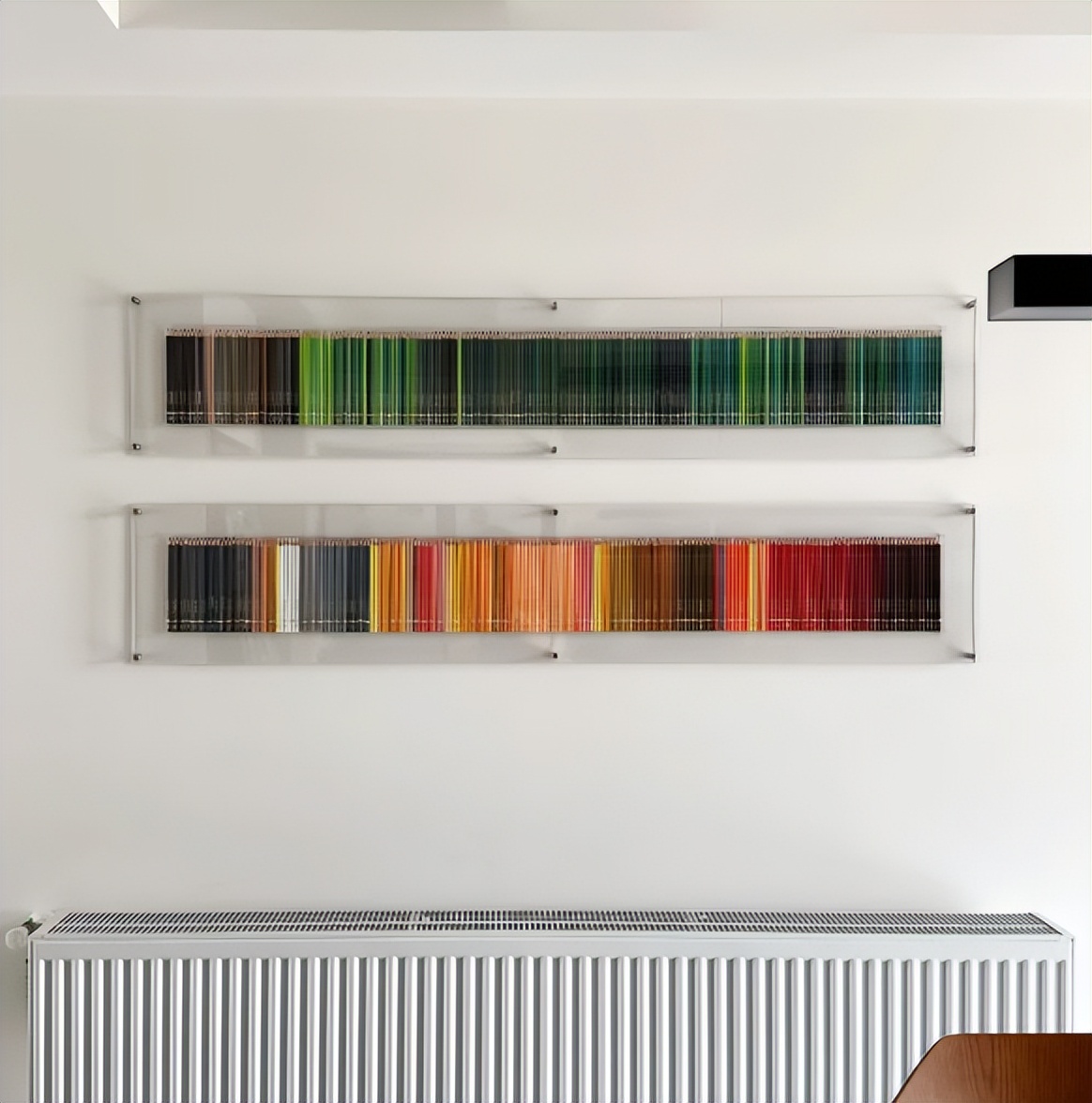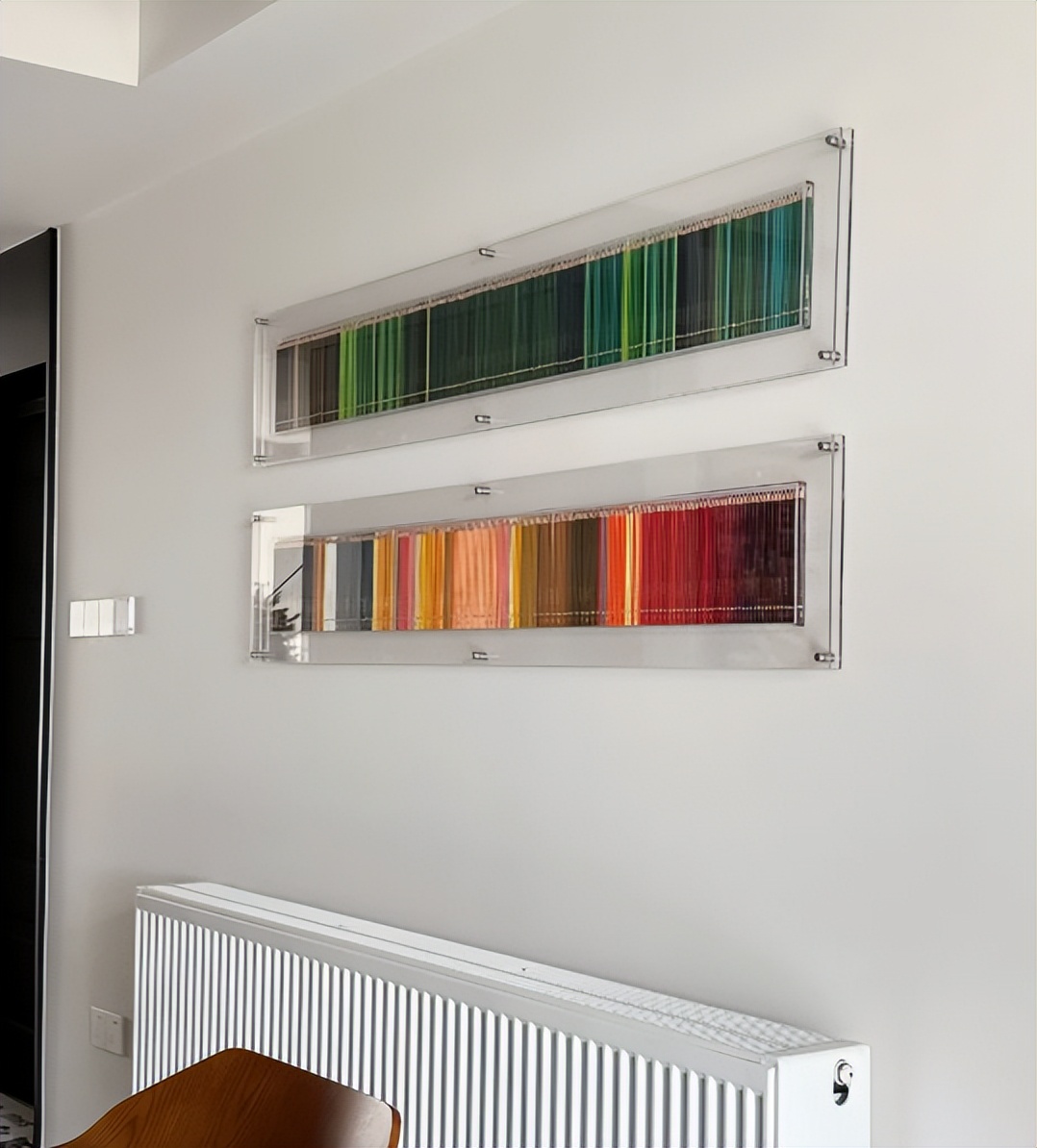 最后把彩铅按照色块装进亚克力相框起来,就可以上墙挂起来了。