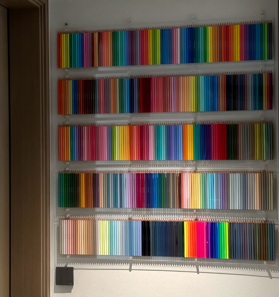 本来单调、枯燥的大白墙,用几百支彩铅装饰了一下之后,瞬间高级感满满~