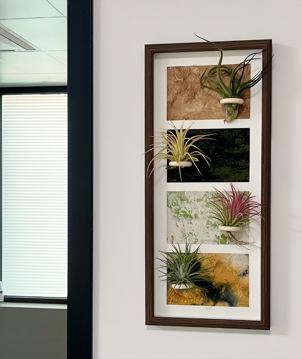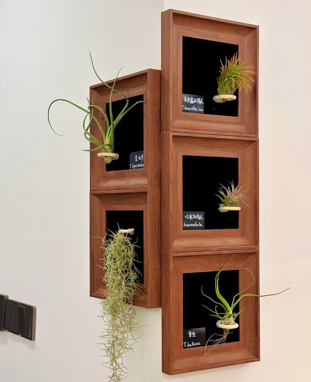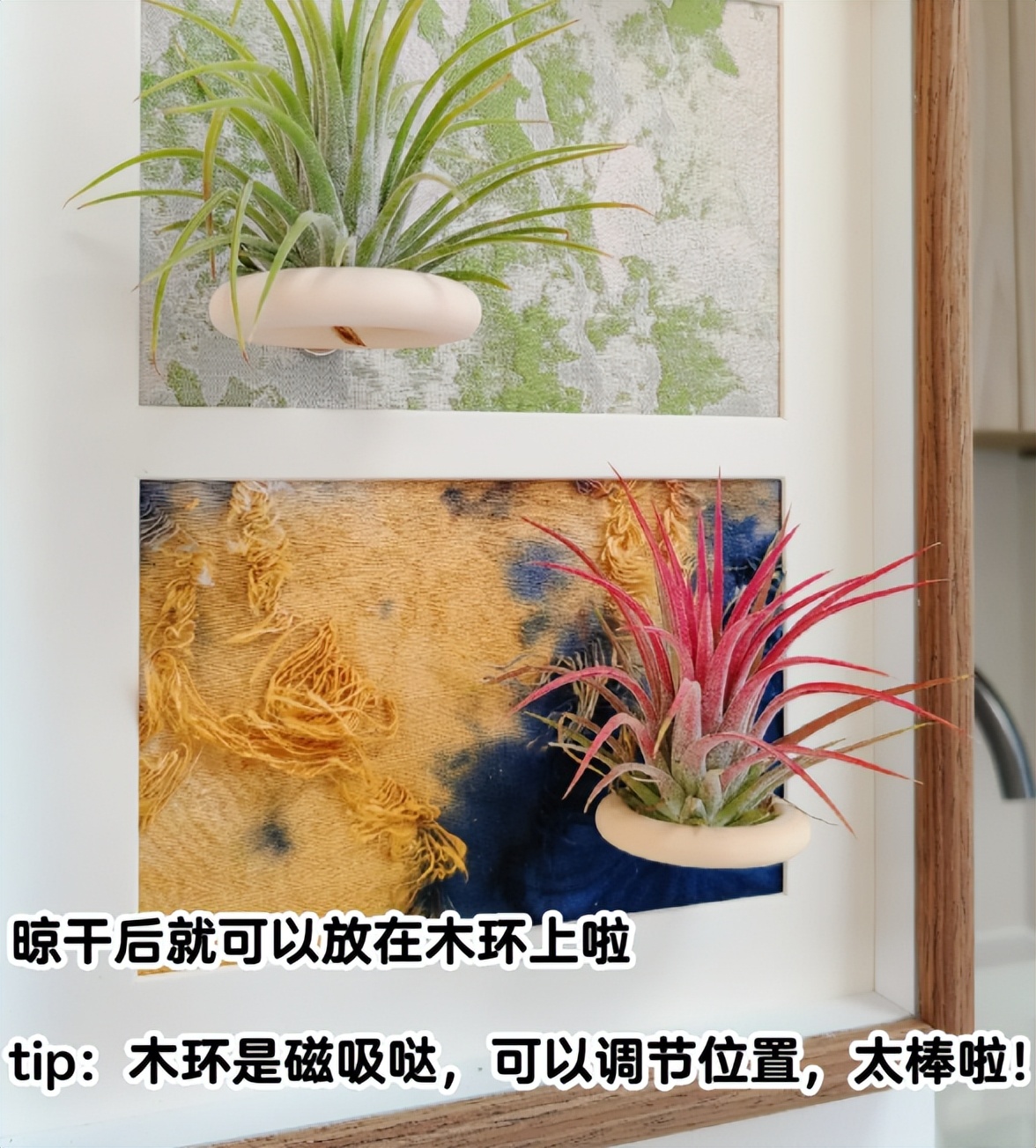 3)把空气凤梨放在木环里面,好看的装饰画就搞定了。