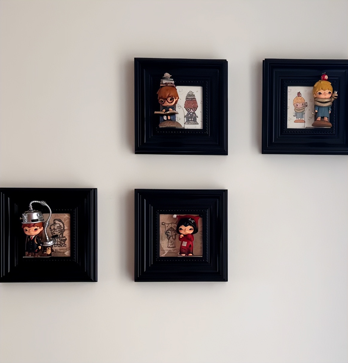家里如果有盲盒的话,可以把它们diy成装饰画,真的很好看!