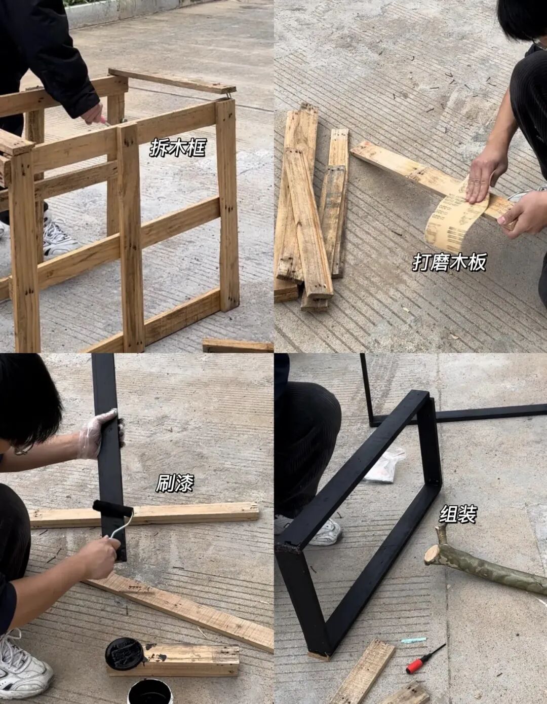 打包快递剩下的木箱子,拆拆改改,钉成一个长方形的画框,打磨好了之后,刷上黑色油漆。