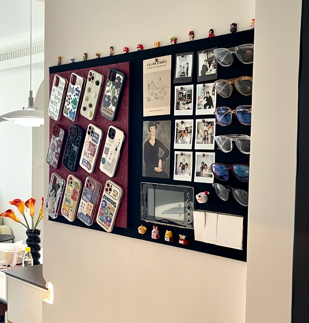 家里如果有毛毡板的话,可以直接把手机壳固定在毛毡板上,再搭配一些照片,其他的小配件,就是一幅很好的画画。