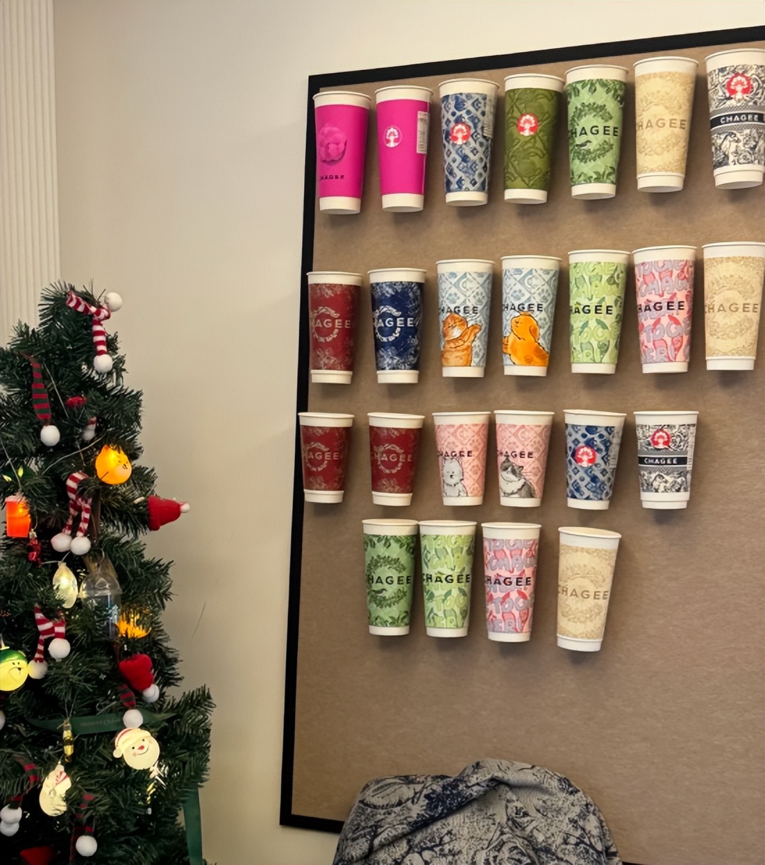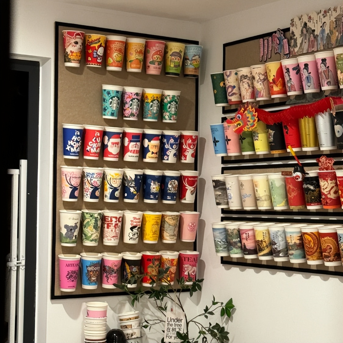 一张毛毡板+喝完的奶茶杯子=挂画。