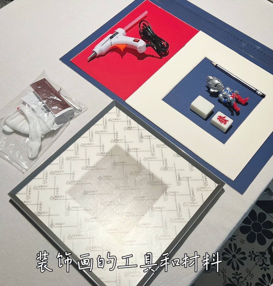 准备装饰画的工具和材料:麻将、热熔胶、装饰画框。