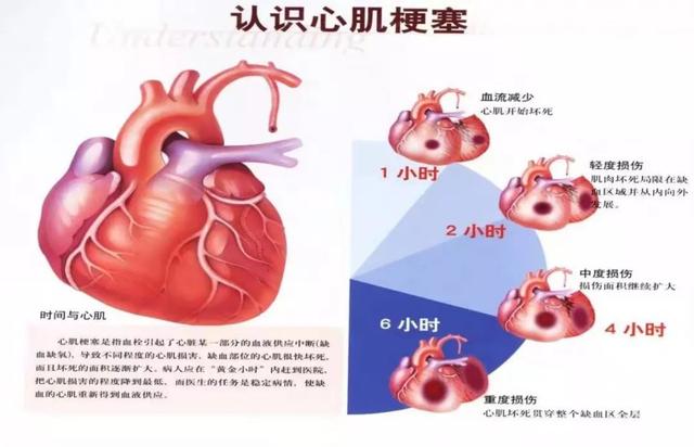 由于心肌细胞和神经细胞一样,属于不可再生细胞,心肌梗死发作时,被堵塞动脉远端的心肌细胞会失去血液和氧气的供应。超过20分钟,心肌便会出现缺血缺氧性坏死。而且被延误的时间越长,坏死面积越大,死亡率也就越高,预后也就越差。