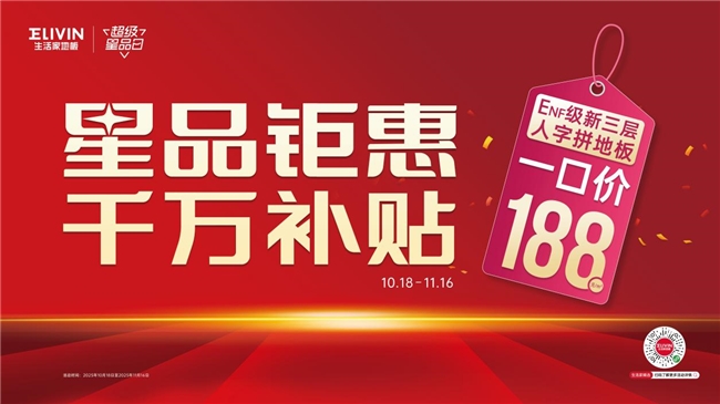 此次,生活家地板敏锐地捕捉到了这一市场痛点,将第九届“超级星品日”的核心聚焦于人字拼地板的普惠推广。生活家地板将旗下ENF级钻晶面新三层人字拼作为主打「星」级产品,通过投入“千万级补贴”,将价格直接拉至每平方米188元。这一市场策略让高端人字拼地板“平民化”,消费者能够以更加实惠的价格实现家居装修拼法自由,满足了年轻群体对品质家居的追求,充分体现生活家地板对年轻消费市场的深刻洞察。