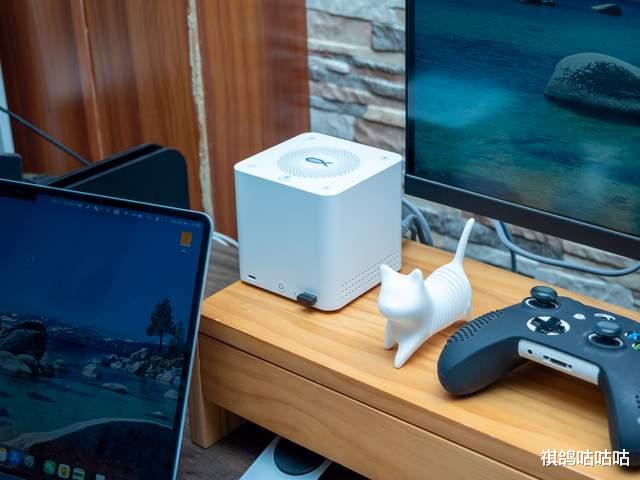 拿出主机能感受到扎实的做工,简约机身设计不挑桌面风格,且尺寸和零刻ME Mini一致,摆在桌面角落基本不占空间,对桌面空间有限的多设备用户特别友好。接口布局是核心亮点,前后各配备一个USB4 v2接口,直接支持80Gbps超高传输速度,日常传拍鸟RAW图、星空延时大容量素材,效率直接拉满。而且接口分工明确,前置专门接显示器、键鼠、硬盘等外设,随取随用;后置可连接零刻GTi12、Mac mini M4、MacBook Air M5这类主机和笔记本,我的几款设备都能完美对接,从根源上避免线缆混插,让桌面走线更规整。