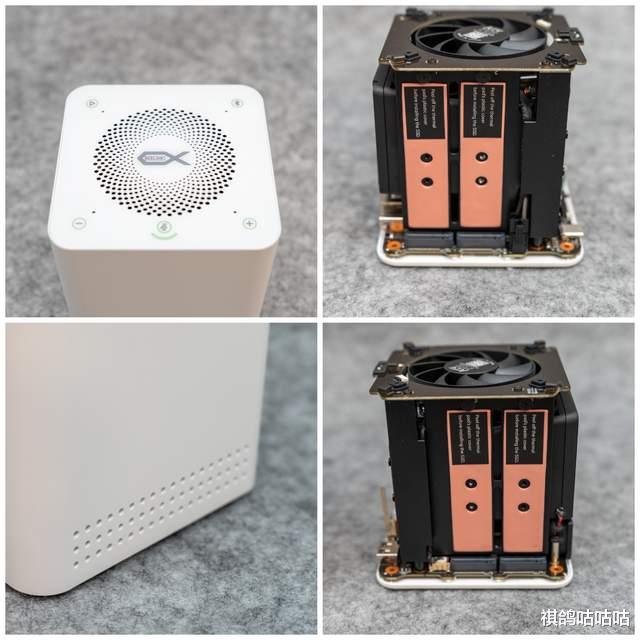 散热和存储扩展是我对这款扩展坞最关注的两点,Mate Pro的表现都精准贴合刚需。散热采用上进风、两侧出风的结构,机身顶部和两侧开有细密的散热孔,孔位做工规整无毛刺,日常连续几小时传素材、接显示器,空气流通顺畅,机身仅微微温热,不会发烫卡顿,能保障设备长时间稳定运行。存储扩展能力更是戳中创作党需求,机身内部有4个SSD插槽,支持2230、2242、2280三种主流硬盘规格,且均兼容PCIe4.0×1协议,单槽最高8TB、总容量最大32TB,不管是给存储告急的双Mac补容量,还是给零刻GTi12扩容装游戏,都能灵活搭配,彻底解决大容量存储烦恼。